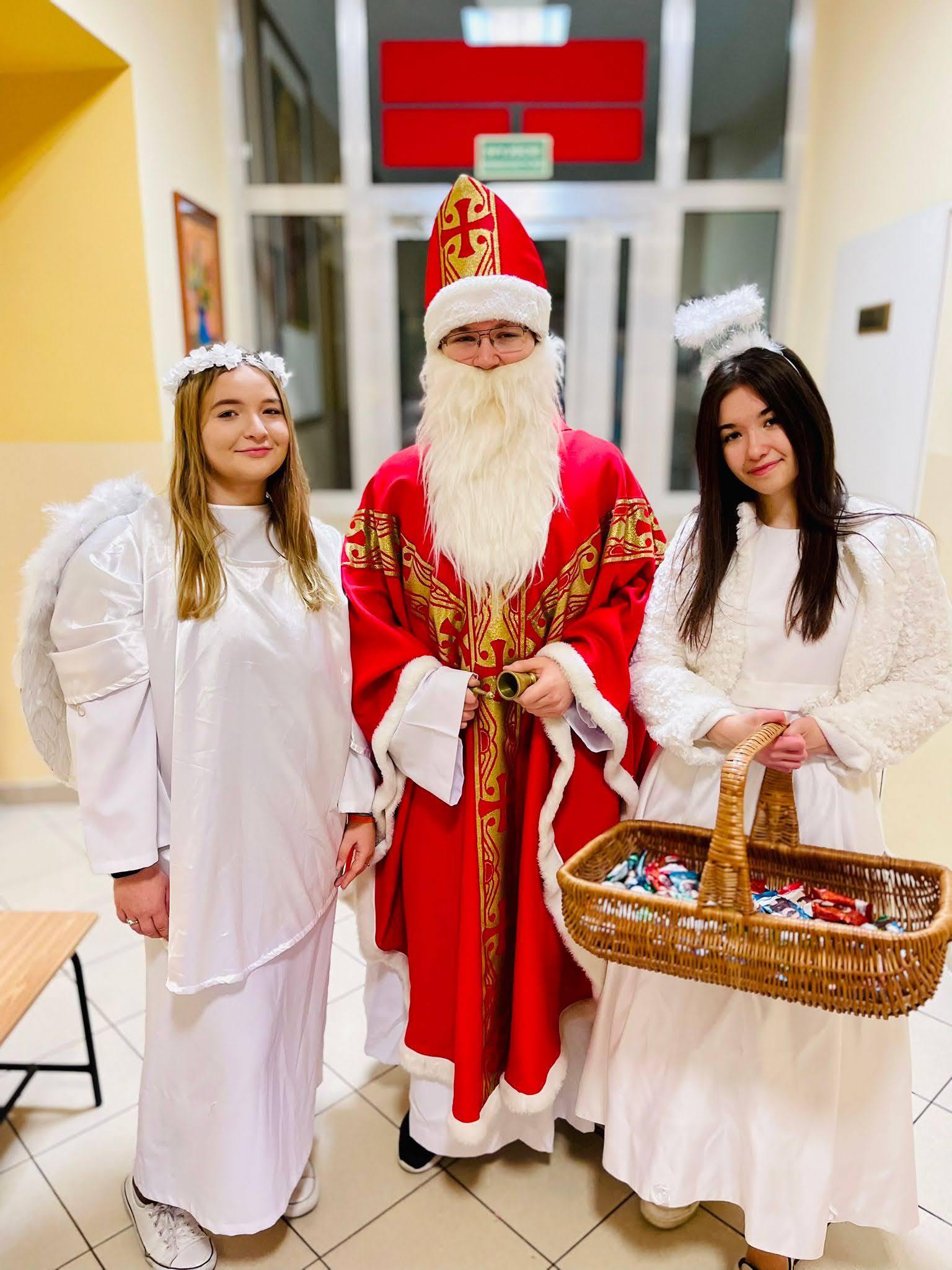 6 grudnia to data, którą zna każde dziecko. Mikołajki już na stałe wpisały się w szkolny kalendarz . W tym roku również nie zabrakło radości i uśmiechów. Przedstawiciele Samorządu Uczniowskiego w strojach aniołków i Świętego Mikołaja odwiedzili uczniów zarówno tych najmłodszych jak i starszych, częstując słodkościami. Wszyscy uczniowie ubrani byli w tym dniu w stroje z akcentem mikołajkowym. Magia zbliżających się świąt zawitała już w progi naszej szkoły.